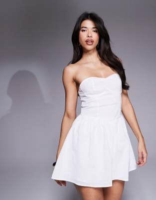 Missy Empire – Trägerloses Mini-Skaterkleid in Weiß mit Leinenoptik und Herzausschnitt