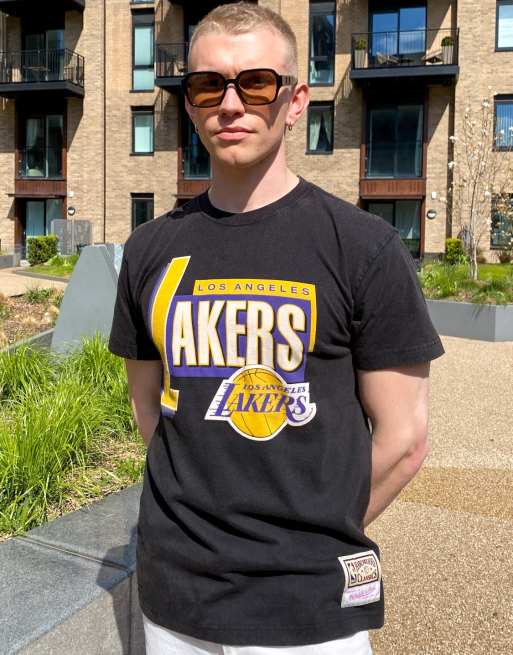 Mitchell & Ness – NBA LA Lakers – T-Shirt in Schwarz mit rundem, mittigem Logo