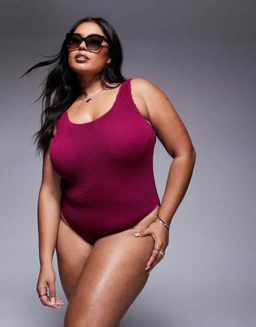 Moda Minx Curve – Badeanzug in Beerenrot mit Kräuselstruktur