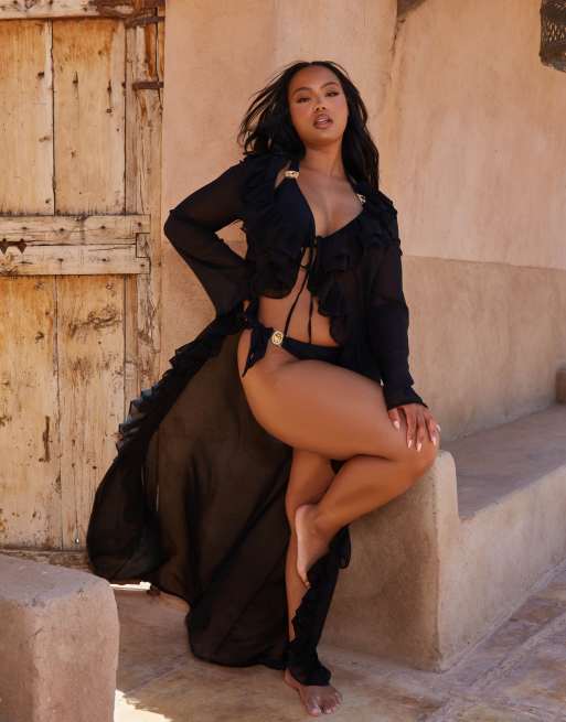Moda Minx Curve X Bernadette Afia – Maxi-Sarong in Schwarz mit Rüschen
