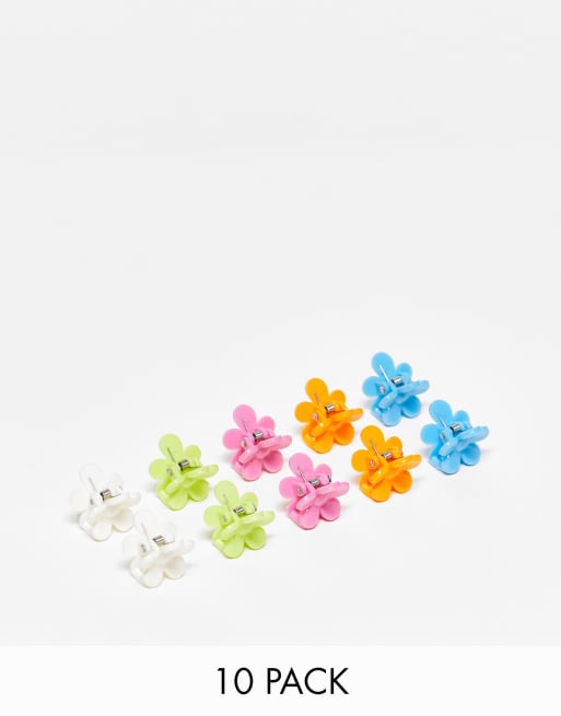 Monki – 10er-Pack Haarklammern in Blumen-Optik in mehreren Farben