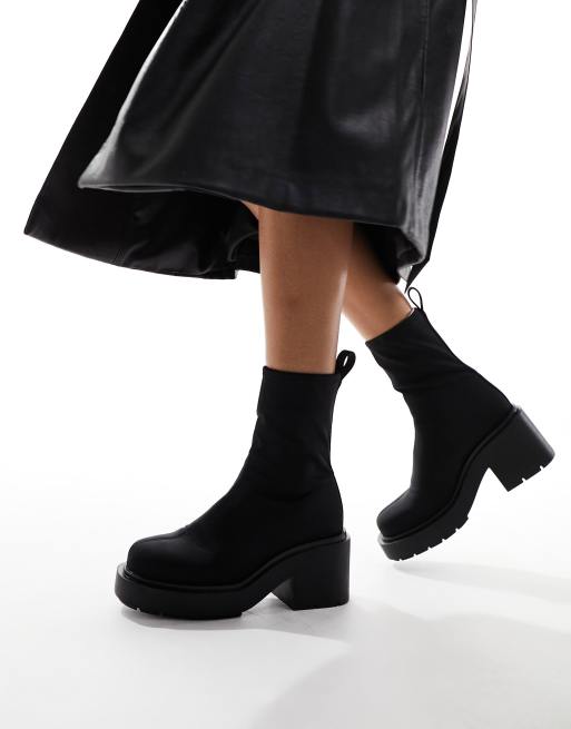 Monki – Ankle-Boots zum Reinschlüpfen in Schwarz mit Plateausohle und Absatz