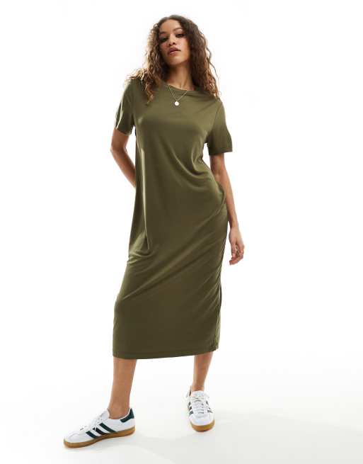 Monki – Besonders weiches T-Shirt-Kleid in Khaki