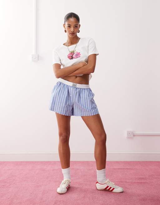 Monki – Boxershorts mit Streifen in Blau und Weiß und umschlagbarem Bund
