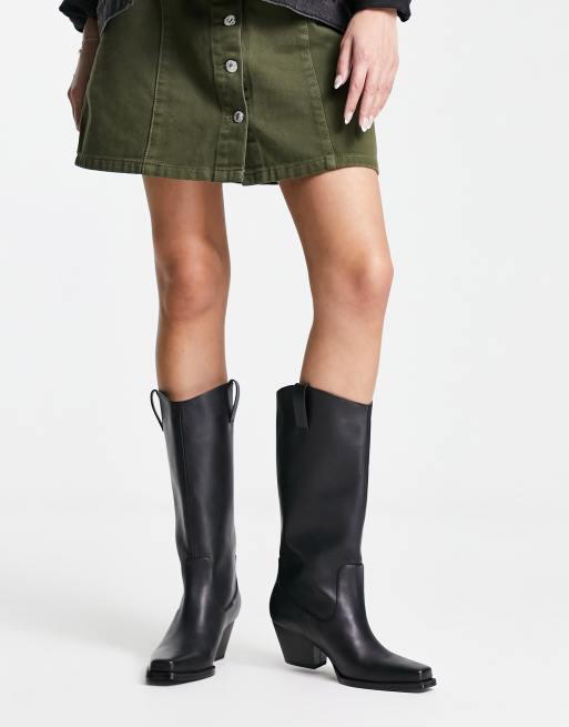 Monki – Cowboy-Stiefel in Schwarz mit Absatz