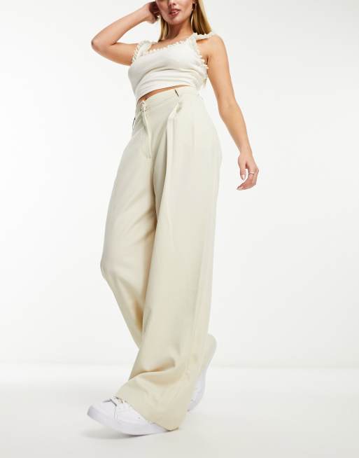Monki – Elegante Hose in Beige mit weitem Schnitt und hohem Bund