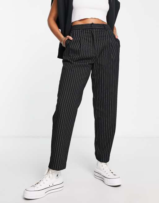 Monki – Elegante Hose mit lässigem Schnitt und Streifen in Schwarz-Weiß