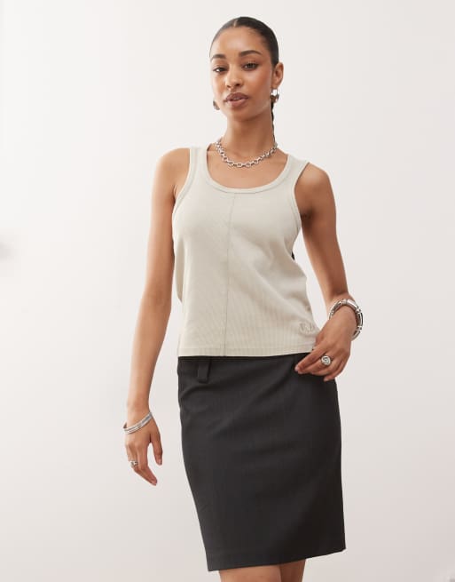 Monki – Eleganter Midirock in meliertem Dunkelgrau