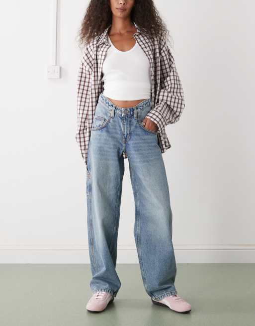 Monki – Fever – Weite Workwear-Jeans in verwaschenem Blau
