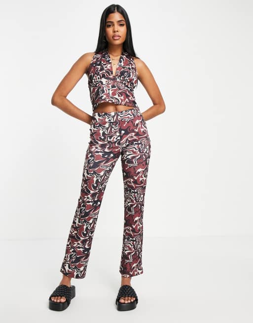 Monki – Gerade Hose mit Wirbelmuster in Braun, Kombiteil