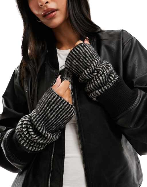 Monki – Gerippte Armstulpen in Schwarz und Grau