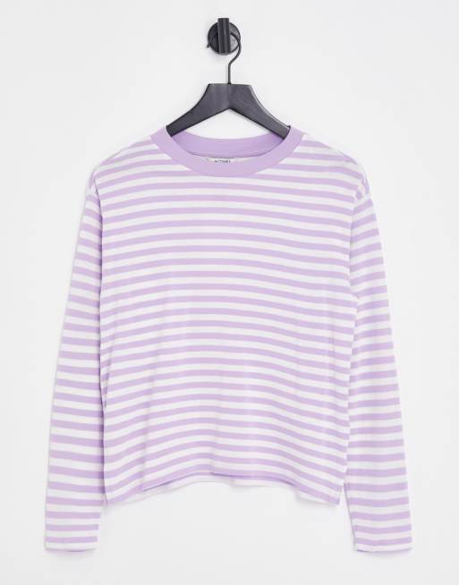 Monki – Gestreiftes, langärmliges Shirt in Flieder