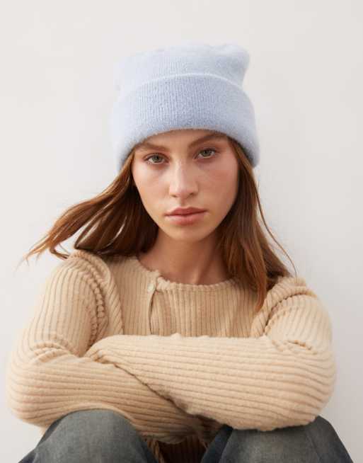 Monki – Gestrickte Bommelmütze in Blau