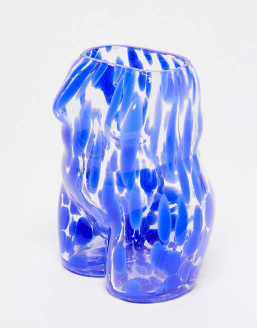 Monki – Glasvase mit blauem Farbklecksmuster