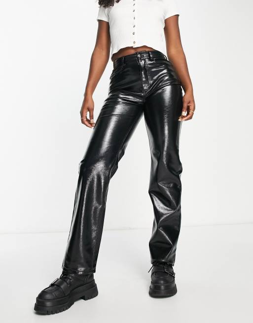 Monki – Hose aus Lackleder mit geradem Bein in Schwarz