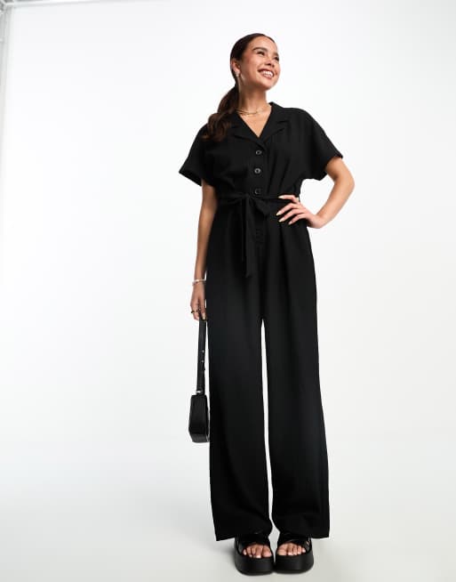 Monki – Jumpsuit aus Popeline in Schwarz mit Bindegürtel