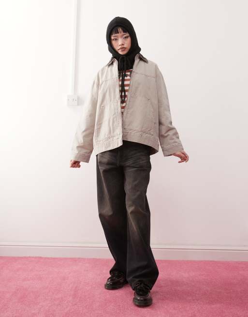 Monki – Kurze Jacke aus Canvas in Beige mit Cord-Kragen