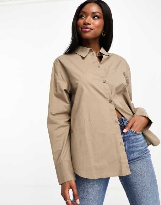 Monki – Langärmlige Bluse aus Baumwolle in Taupe