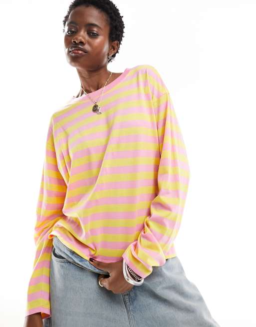 Monki – Langärmliges Oversize-Oberteil in Rosa und Gelb gestreift