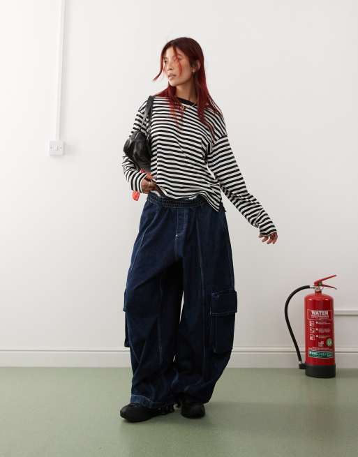 Monki – Langärmliges, schwarzes Oberteil mit weißen Streifen