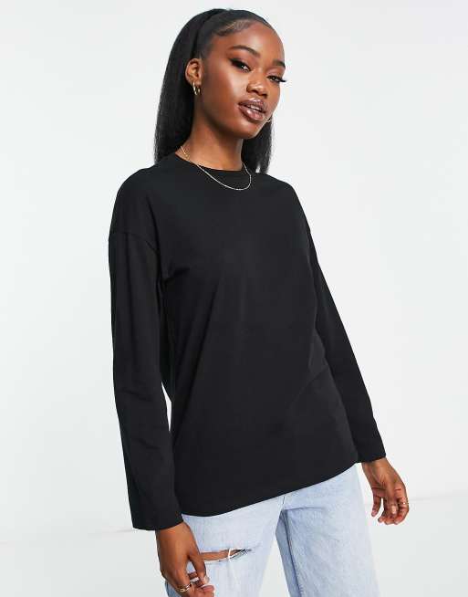 Monki – Langärmliges Shirt in Schwarz