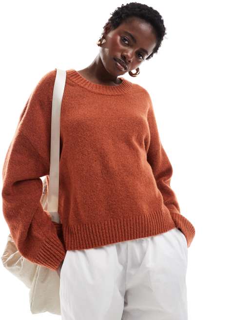 Monki – Locker geschnittener Strickpullover in Rostrot mit Rundhalsausschnitt