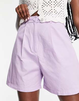 Monki – Longline-Bermudashorts mit weitem Bein in Pastellfarbe