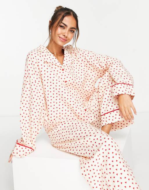 Monki – Lova – Pyjama aus Flanell mit weihnachtlichem Herzchenmuster