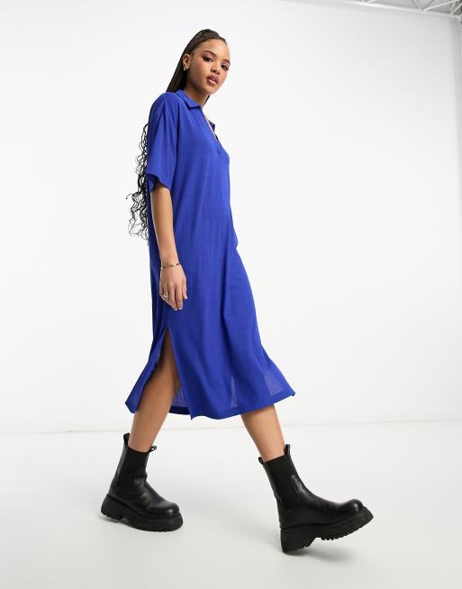 Monki – Midikleid mit Polokragen in Blau
