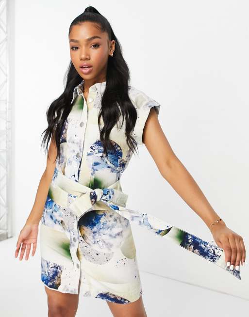Monki – Minikleid mit Taillenband und abstraktem Space-Print