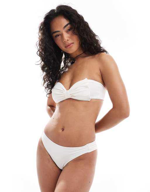 Monki – Mix and Match – Trägerloser Bikini in Weiß mit Schleifendetail, exklusiv bei ASOS
