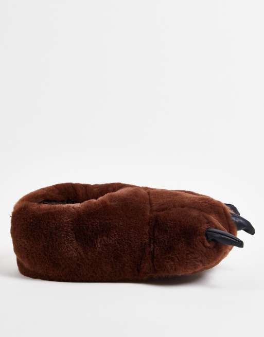 Monki – Monsterfuß-Hausschuhe in Braun aus Kunstpelz