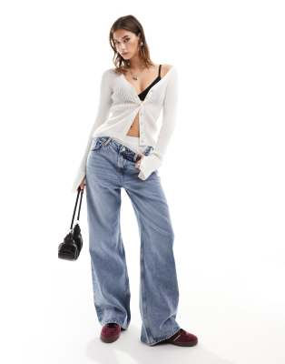 Monki – Naoki – Locker geschnittene Jeans in Mittelblau mit niedrigem Bund