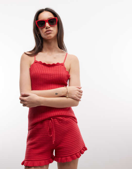 Monki – Neckholder-Outfit in roter Häkeloptik
