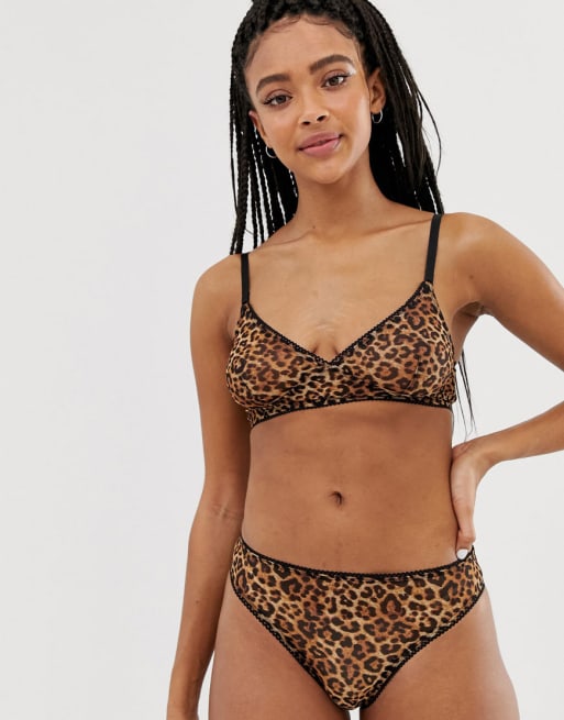 Monki – Netz-BH und Slip mit Leoprint im Set