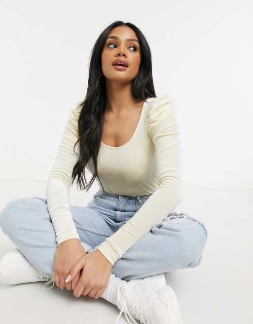 Monki – Olisa – Samtoberteil in Gelb mit Puffschultern