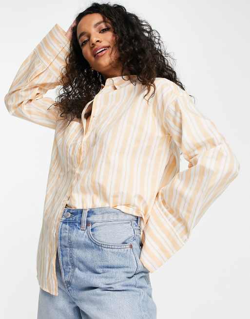 Monki – Oversize-Hemd in Orange gestreift mit weiten Ärmeln