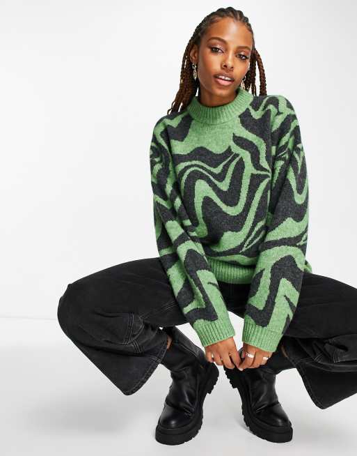 Monki – Oversize-Pullover aus Jacquard mit grünem Wirbelmuster
