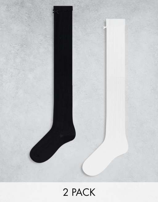 Monki – Pellerine – 2er-Pack kniehohe Socken in Weiß und Schwarz