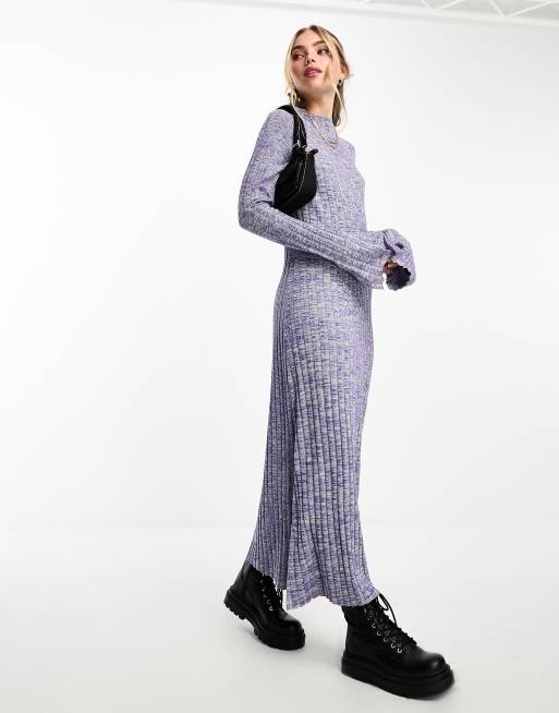 Monki – Plissiertes, gestricktes Midi-Pulloverkleid in meliertem Flieder und Grün