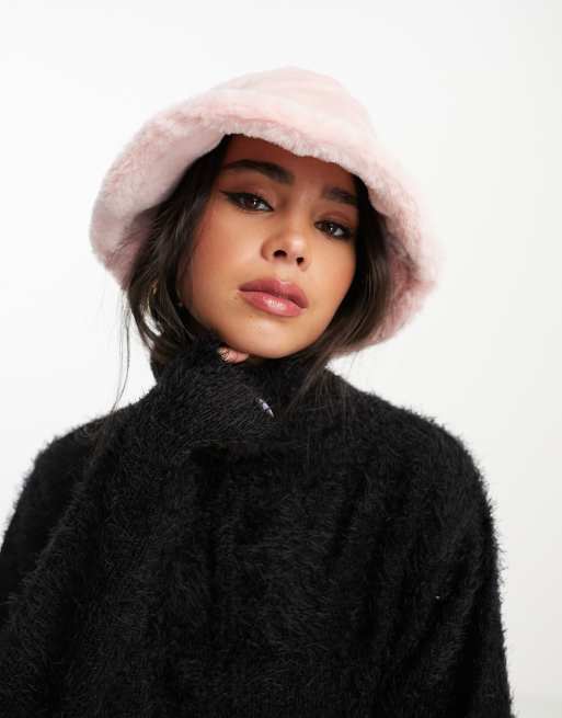 Monki – Rosa Anglerhut aus Kunstpelz