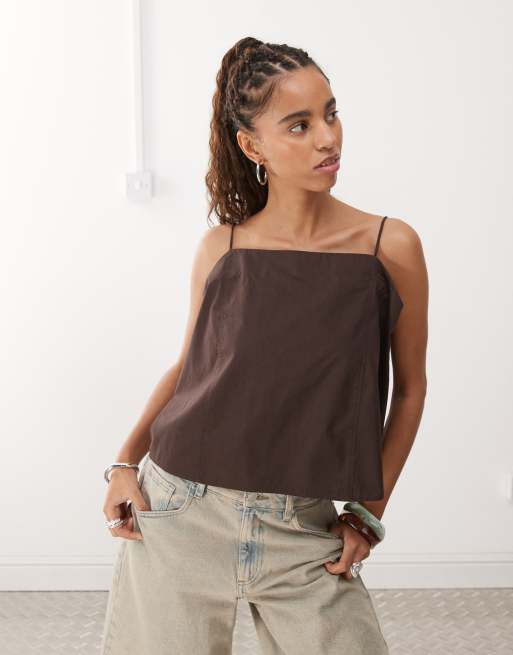 Monki – Trapezförmiges Trägeroberteil in Braun