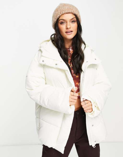 Monki – Wattierte Jacke aus Polyester in gebrochenem Weiß mit Kapuze - WHITE
