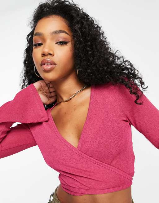 Monki – Wickeloberteil mit Bindedetail in Rosa