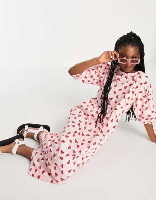 Monki – Yoyo – Midikleid in Rosa mit Pilzmuster
