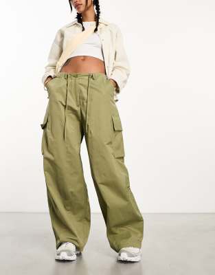 Moon River – Cargohose in Olivgrün mit verstellbarem Tunnelzug in der Taille
