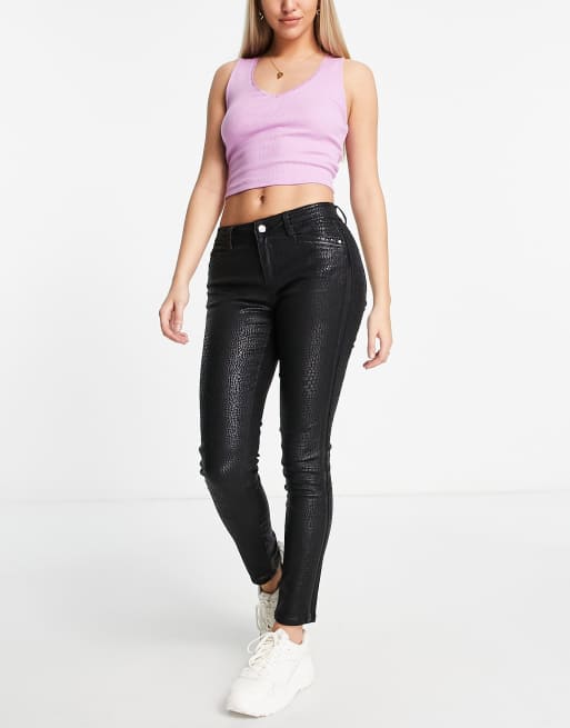 Morgan – Hose mit engem Schnitt in Schwarz in Kroko-Optik