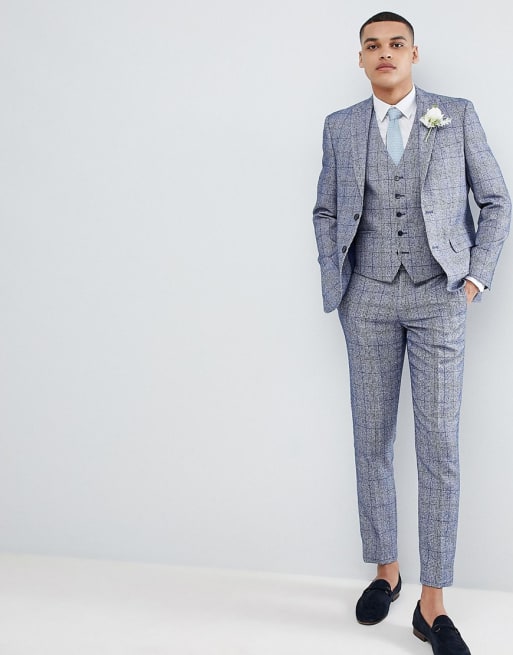 Moss London – Hellblau karierter Anzug mit engem Schnitt