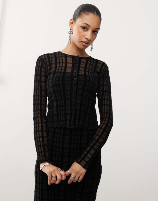 Motel – Kahula – Micro-Strickjacke in Schwarz mit geflocktem Karomuster