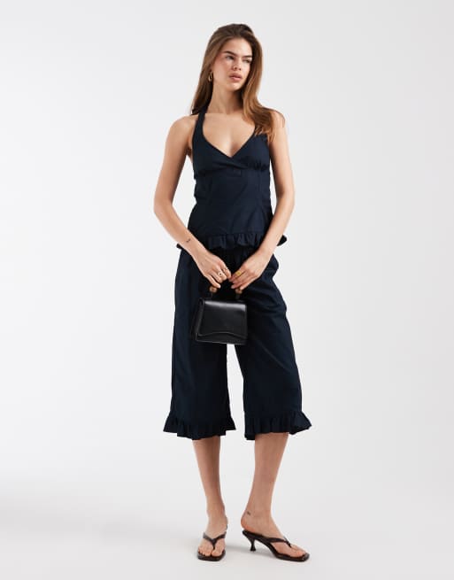 Motel – Tenison – Set in dunklem Marineblau mit Rüschensaum